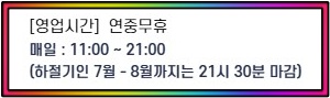 입장 마감은 영업 종료 1시간 전이며, 미성년자는 입장 불가하니 참고해 주세요.