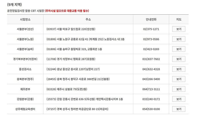 일부 지역(강원, 전북, 충남 등)은 수요에 따라 시험일이 매월 변경되므로 주기적인 확인 필요.