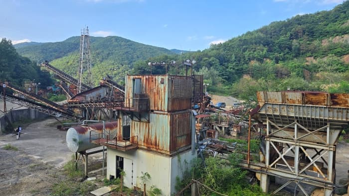 초입에 들어서면 비포장 길에 이런 폐채석장 건물이 보이며