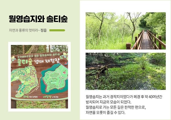 2018년, 정읍의 월영습지와 솔티숲은 전국 26번째 국가생태관광지로 선정되었습니다.